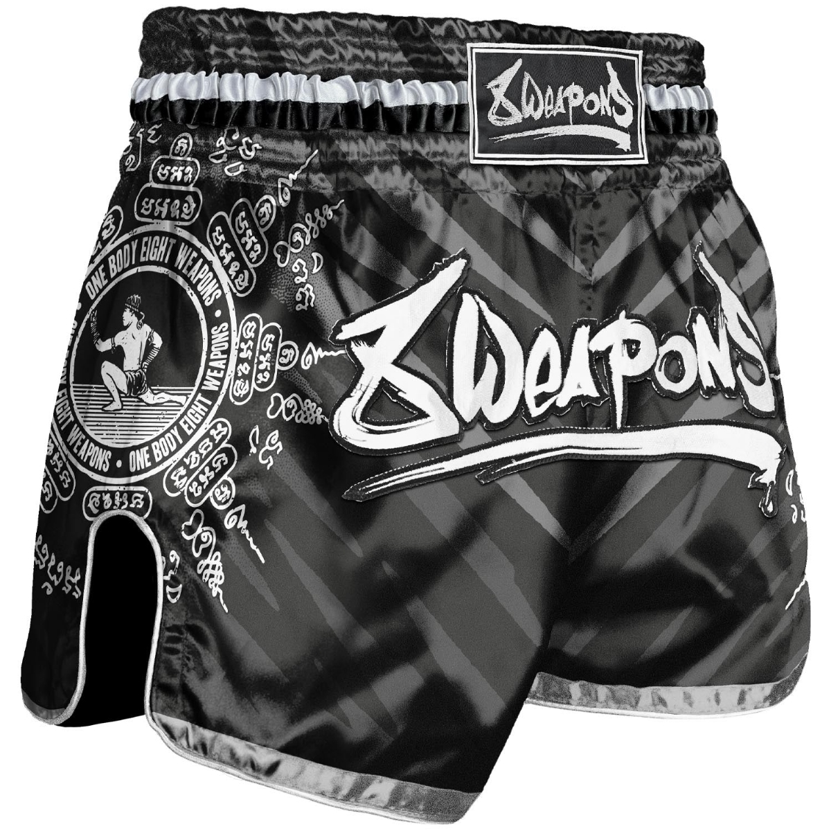 Description 8 WEAPONS Muay Thai Shorts, 8 Ways Yant, black-silver M