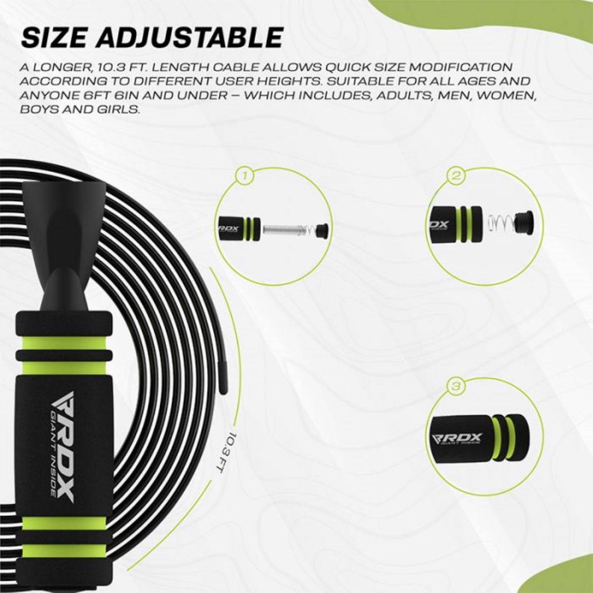 Vos objectifs réalistes de remise en forme commencent-ils à vous paraître intimidants ou inatteignables ? Si oui, arrêtez de sauter aux conclusions et commencez à sauter vers la meilleure version de vous-même en utilisant la corde à sauter RDX Speed avec poignées en mousse à mémoire de forme et poids. Cette corde à sauter lourde et durable est conçue pour un usage quotidien, qu'il s'agisse de routines de gym épuisantes, d'entraînements en plein air ou de séances d'entraînement à domicile.