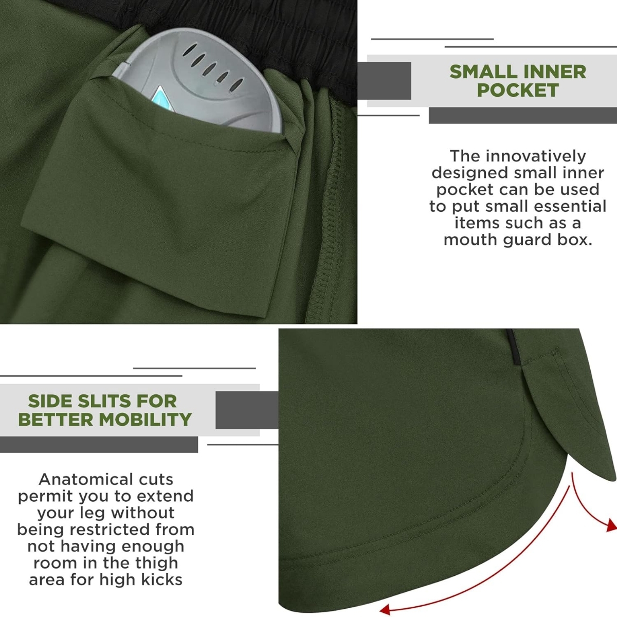Ideal for beginners and professionals alike, these shorts are made from high-performance polyester with 2% spandex, ensuring durability, flexibility, and comfort. The drawstring waistband allows for a secure and adjustable fit, while the 3-ply reinforced stitching enhances strength and longevity.