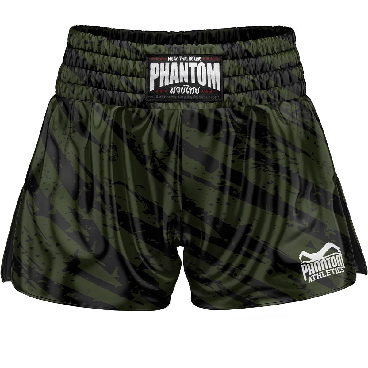 Phantom Muay Thai Shorts Tiger Camo are designed for intense training sessions and regulated fights. The traditional Thai cut ensures maximum freedom of movement during kicks, footwork and clinch exchanges.