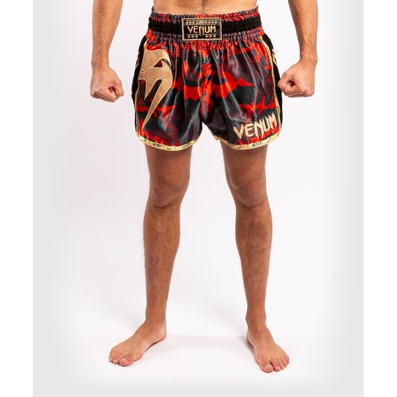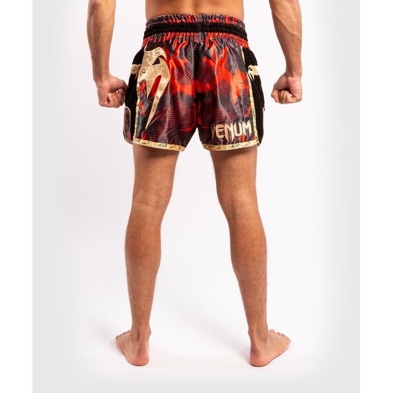 The intricate detailed finishings are remarkable. The Giant Muay Thai Shorts feature a unique, colorful design with Venum logos embroidered in the front and back. Piping at the edges complete the shorts’ look while guaranteeing great durability over time.