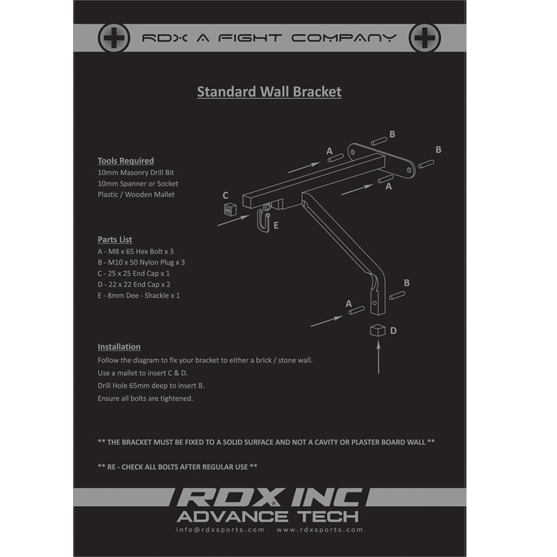 Description RDX X1 Punch Bag Steel Wall Bracket max 40 Kg