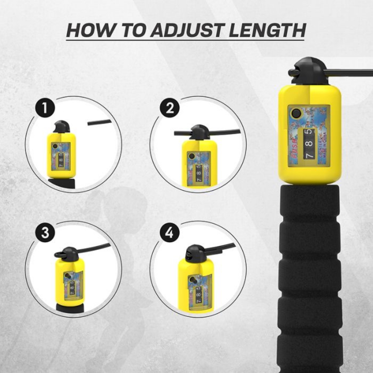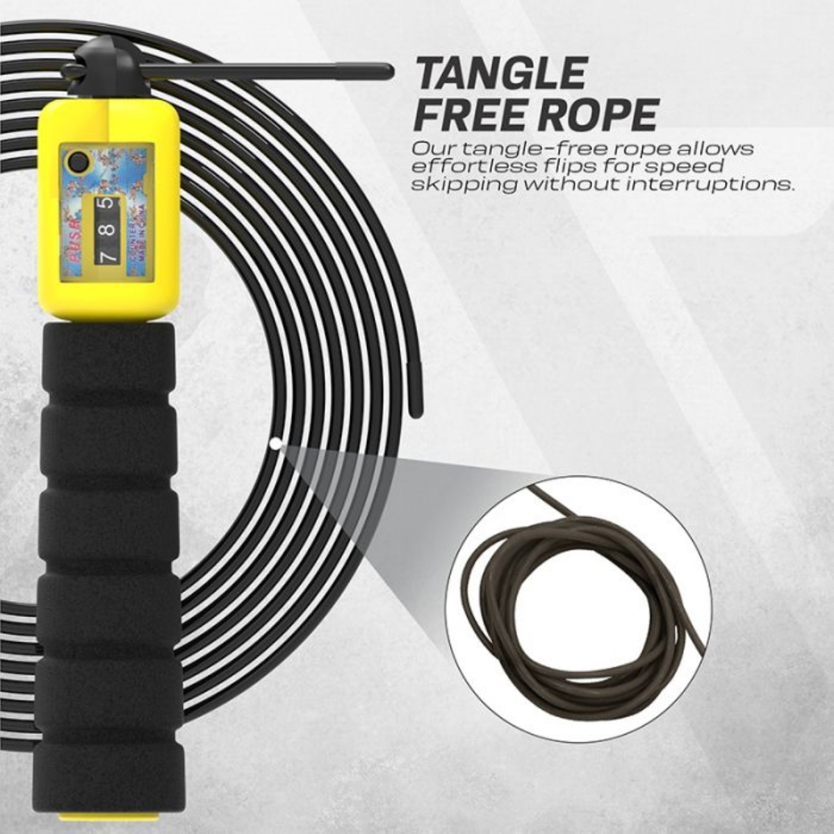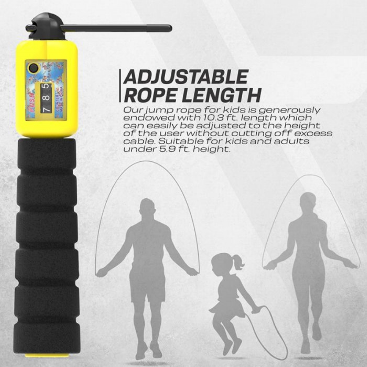 Das weiche Kabel ist schonend beim Aufprall, aber robust genug, um jeder Oberfläche standzuhalten. Die leichten, rutschfesten ABS-Griffe mit Memoryschaum-Beschichtung sorgen für Komfort und verringern den Widerstand bei Drehungen. Der integrierte Zähler zeichnet automatisch jeden Sprung auf und fördert spielerische Motivation. Verstellbare Länge bis 315 cm ohne Schneiden. Geeignet für Kinder und Erwachsene bis 180 cm. Erhältlich in Blau, Grün, Rot und Schwarz mit antimikrobieller Tasche und Trainingsanleitung.