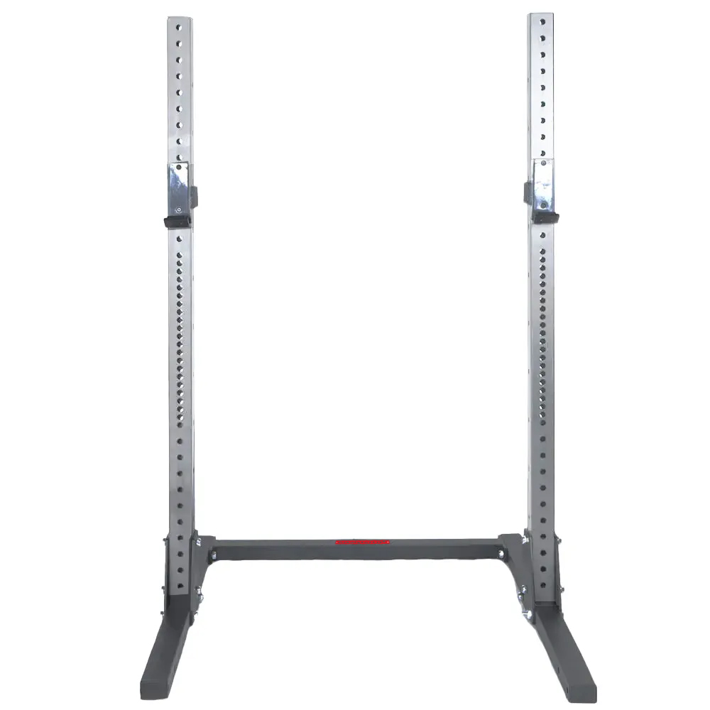 Die nummerierte Bohrung hilft dir, deine Einstellung im Handumdrehen zu finden. Die "Westside"-Zone (enger Abstand beim Bankdrücken) ermöglicht dir eine millimetergenaue Positionierung für ein sichereres und effektiveres Benching. Die Pulverlackierung ist abriebfest und schweißresistent; die Hufe schützen den Boden.