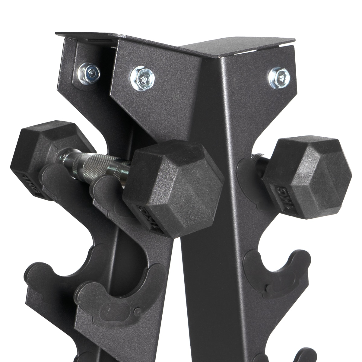 Description Steel shaft storage rack for 10 pairs of GladiatorFit dumbbells