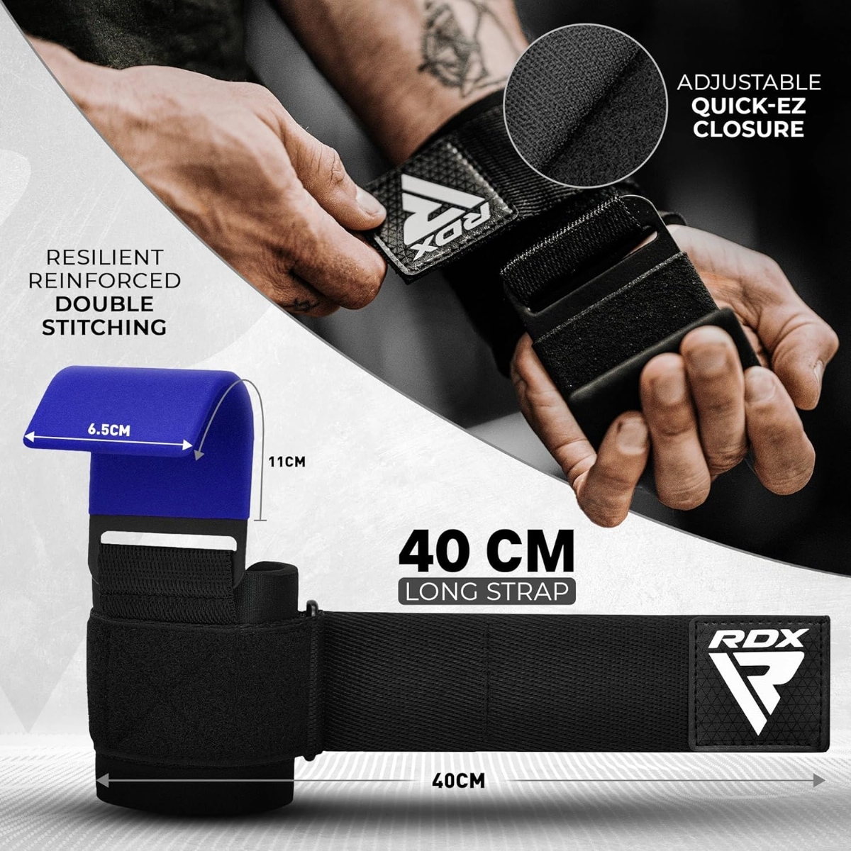 The RDX wrist hook is a premium training accessory for bodybuilding, fitness, powerlifting and combat sports. It allows heavier lifting while protecting the wrists during demanding pulling exercises.