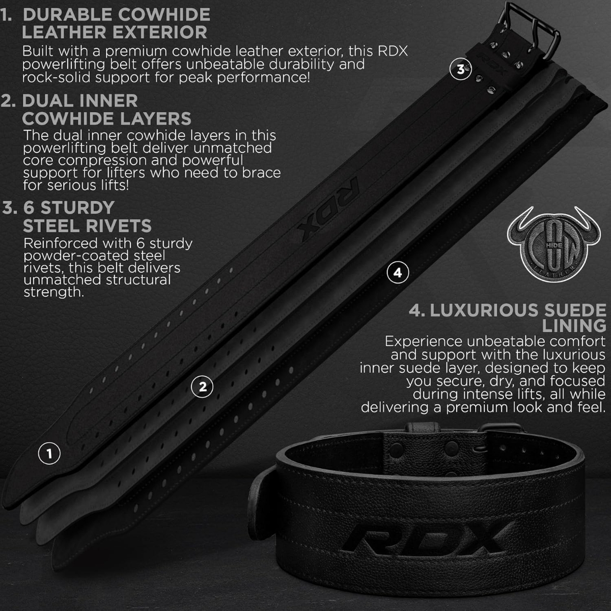 - 4-inch wide design with embossed RDX logo