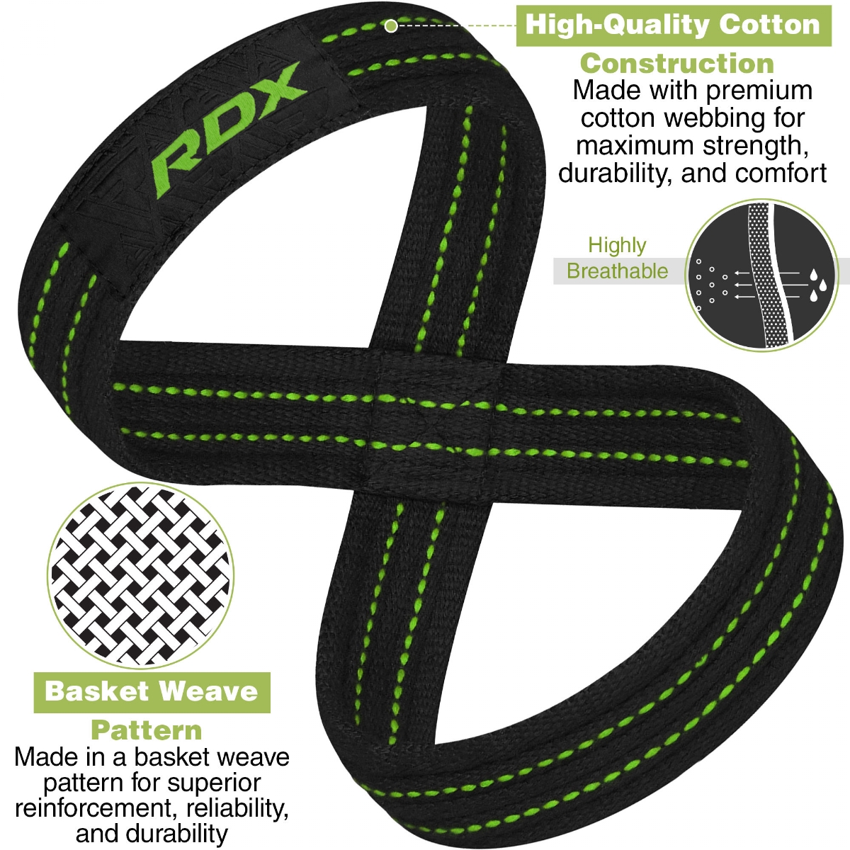 RDX Gym Lifting Cotton Straps, Size: L, Colour: Green