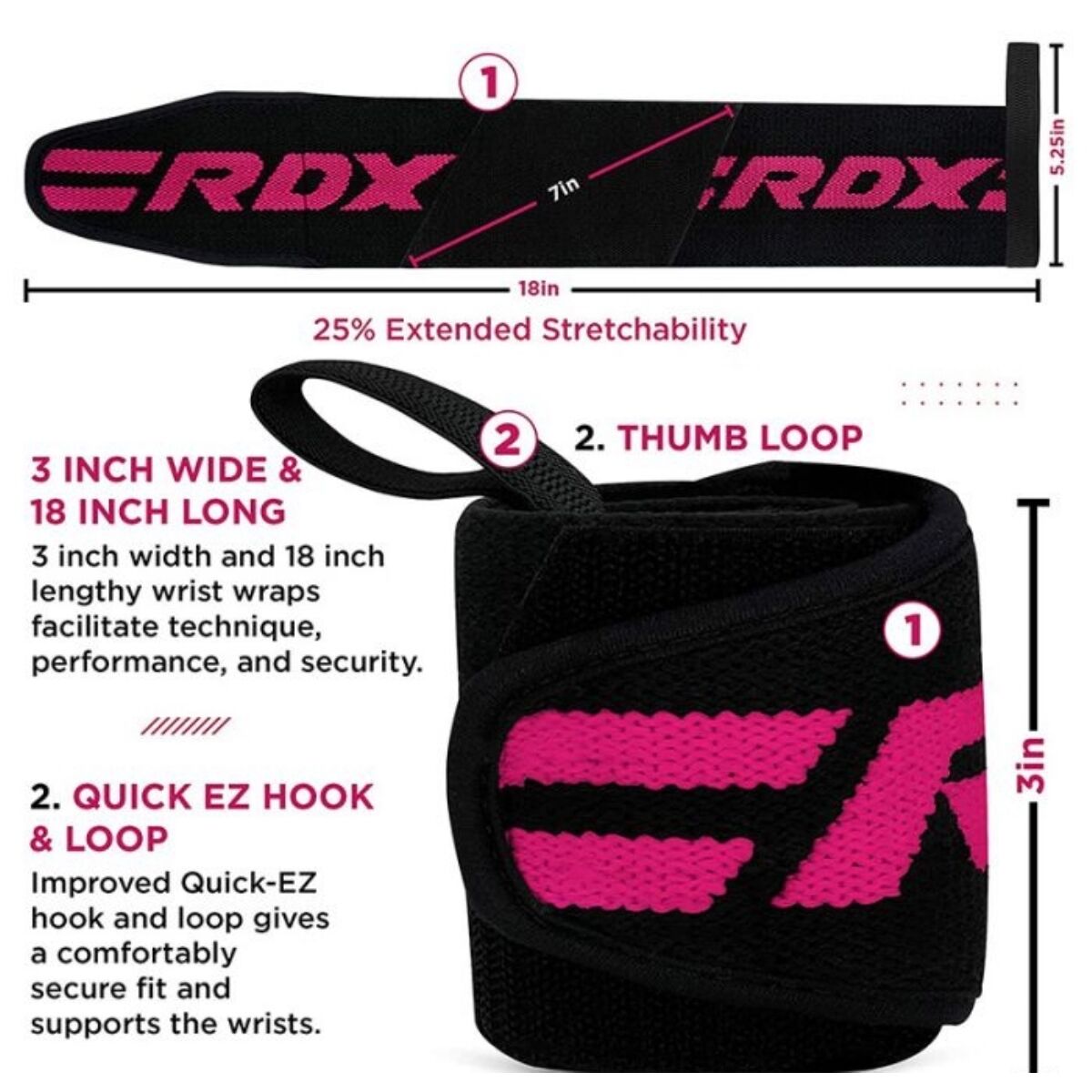 RDX Gym Wrist wrap specializes in wrist support and sweat control by expertly incorporating anti-microbial properties. These top-quality RDX wrist wraps with thumb loops for added support are a special purpose protection gear, designed for hand protection from possible injuries.