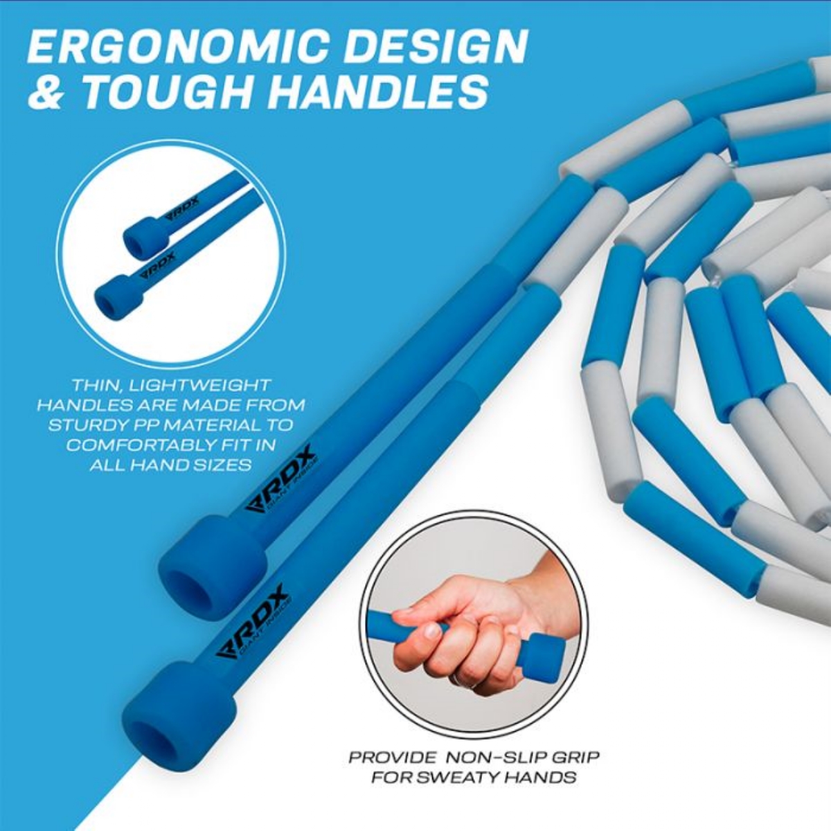 - EASY LENGTH ADJUSTMENT– Easily adjustable 10ft rope can be quickly customized to suit the needs of user with different heights. Just remove the appropriate amount of plastic segmented beads at the handles and re-knot it to your preferred size.
