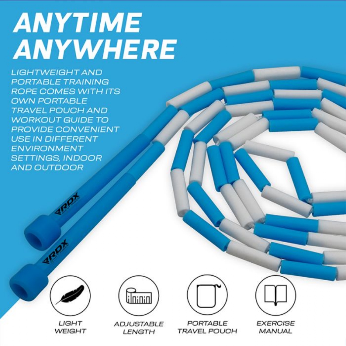 - ANYTIME, ANYWHERE– Lightweight and portable training rope comes with its own antimicrobial pouch and workout guide to provide convenient use in different environment settings, indoor and outdoor – including home gyms, parks, backyards and gymnasiums. Available in three color variations – pink & purple, blue & white, and multicolor rainbow – suitable for any boy or girl.