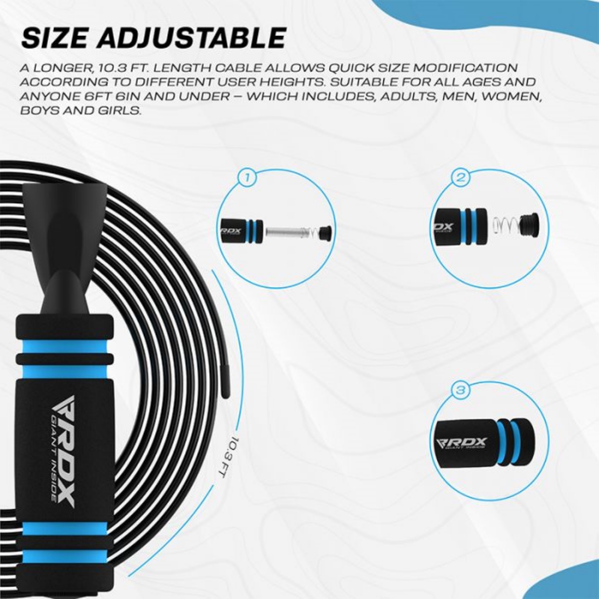 Are your realistic fitness goals starting to seem intimidating or unreachable? If yes, then stop jumping to conclusions and start jumping towards the best version of yourself using RDX Speed Jump Rope with Memory Foam Handles and Weights. Heavy jump rope with durable construction is made for everyday use – whether it's for grueling gym routines, outdoors trainings or home gym workouts.