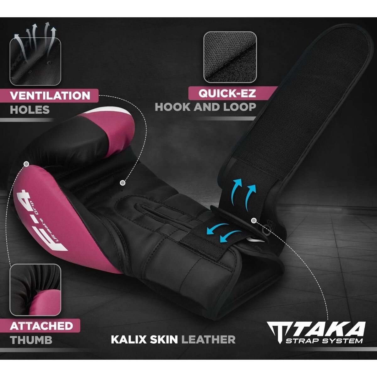 Description Gants de boxe Rex F4 – Rose/Noir – 12oz