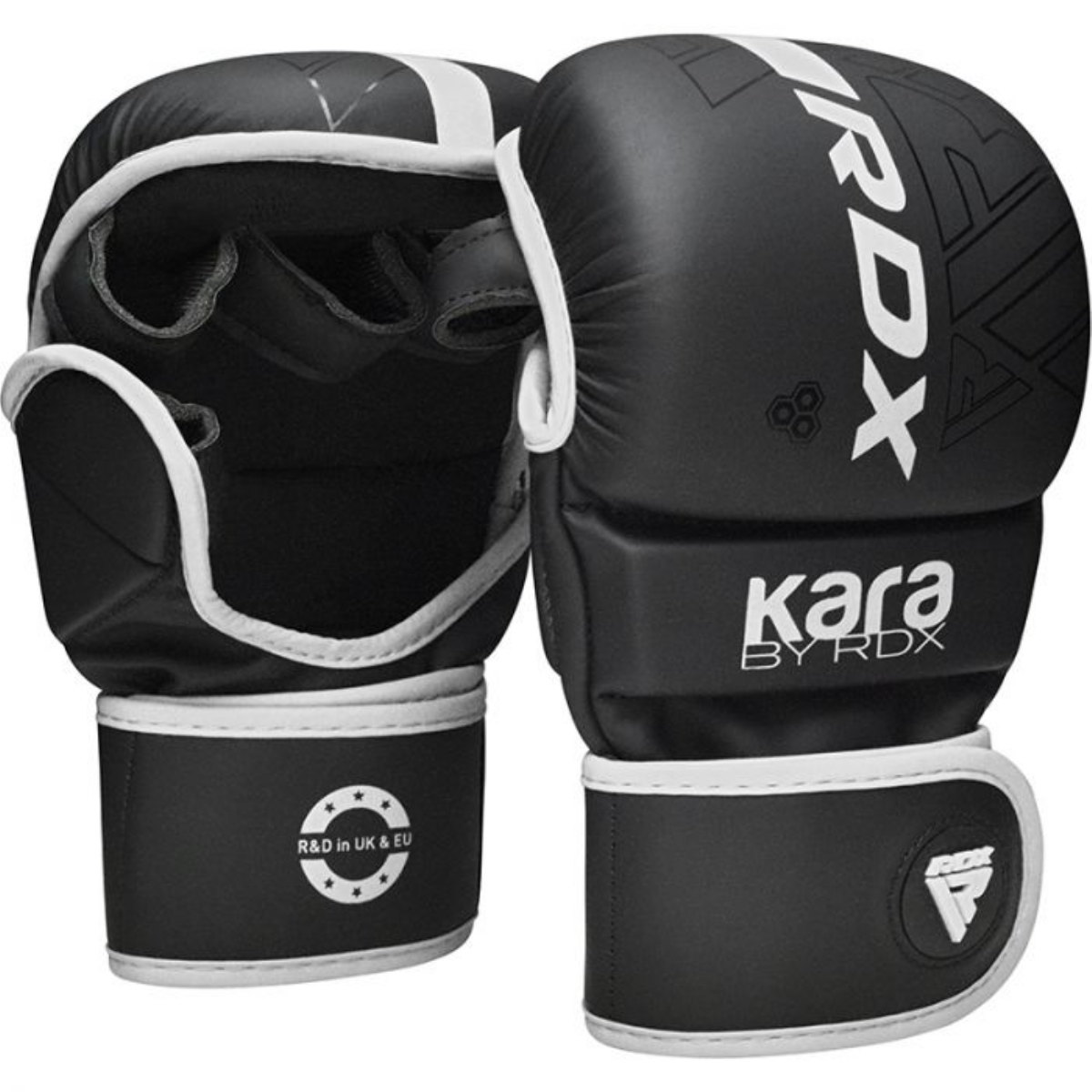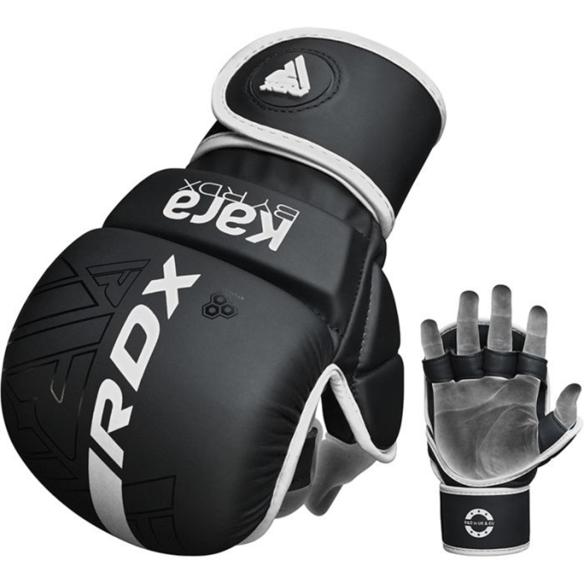 Gants RDX MMA Shooter F6 KARA en cuir Maya Hide™, mousse Max-Shock™, fermeture Quick-EZ™ et paume ouverte. Certifiés FIGMMA & EMMAA.