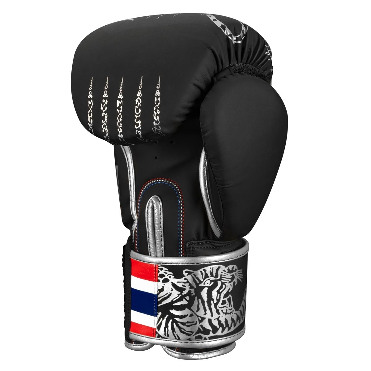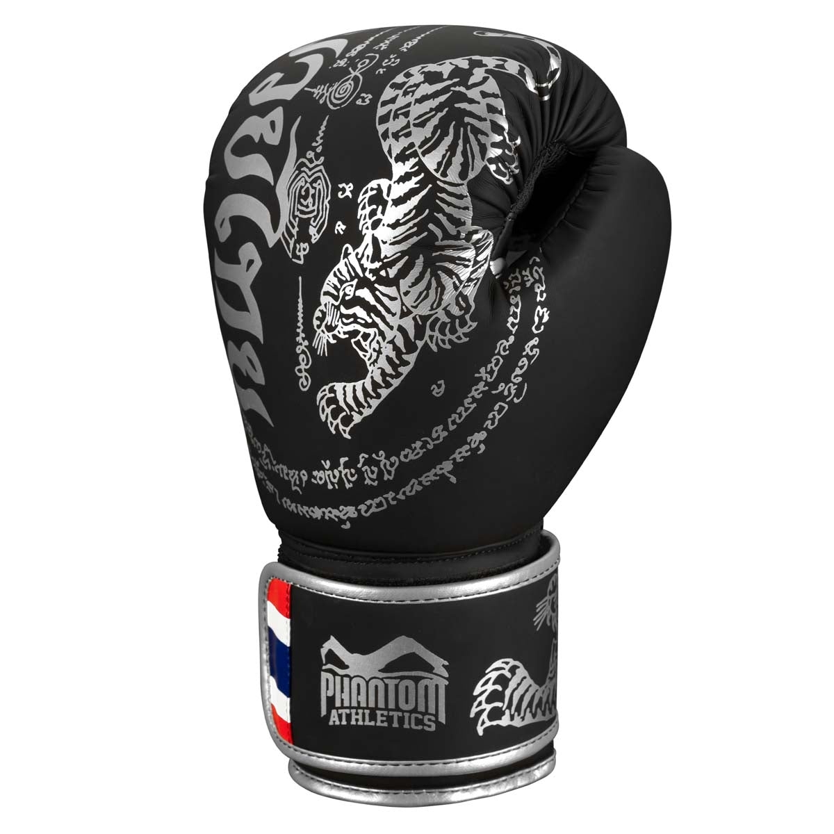 The Phantom Muay Thai boxing gloves with Sak Yant/Yantra artwork (tigers, Thai scripts) are best-sellers for sparring and training. Their high-tech foam absorbs impact, while the compact Thai cut and wide Velcro keep your wrist locked in.