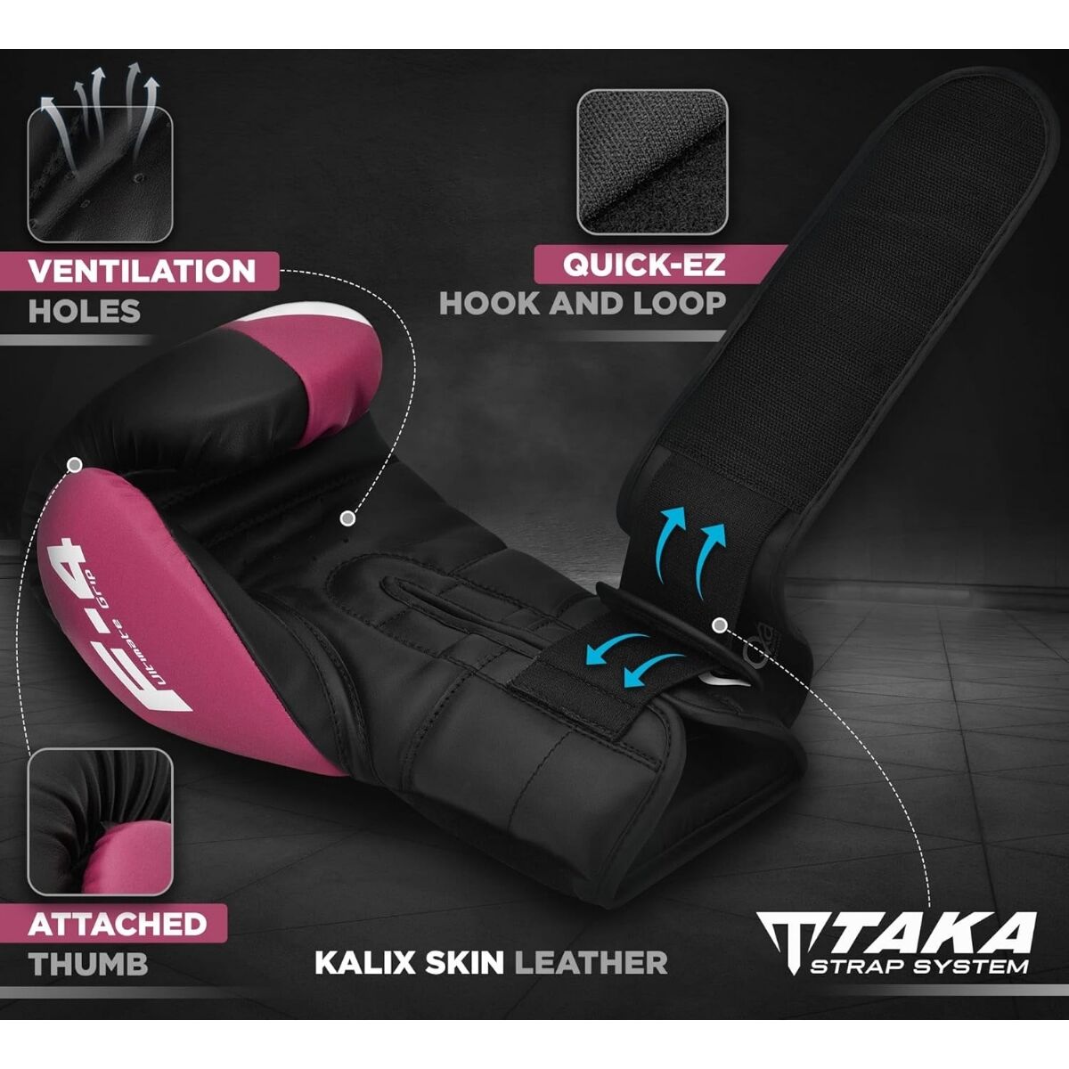 Produktbeschrieb Boxhandschuhe Rex F4 – Rosa/Schwarz – 10oz