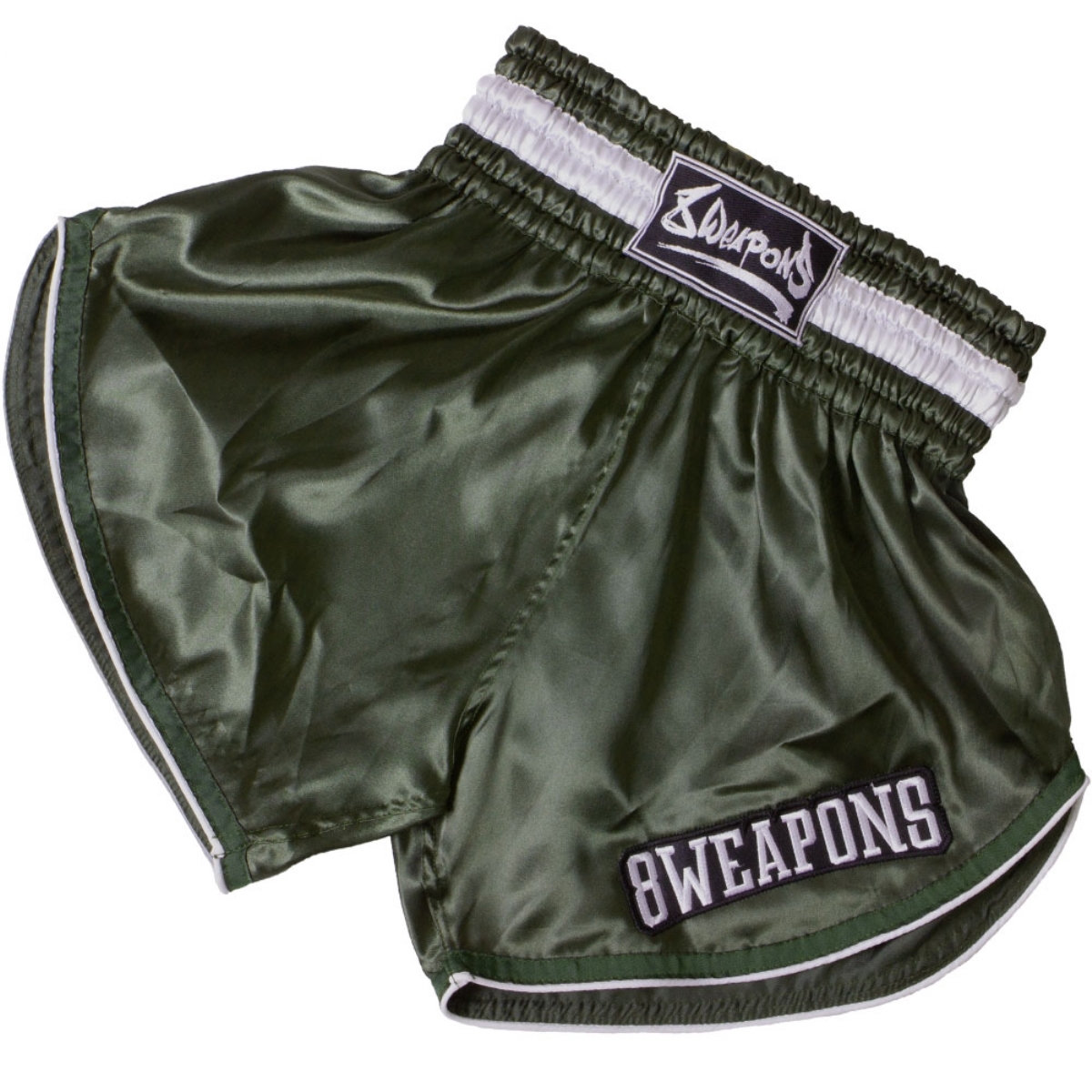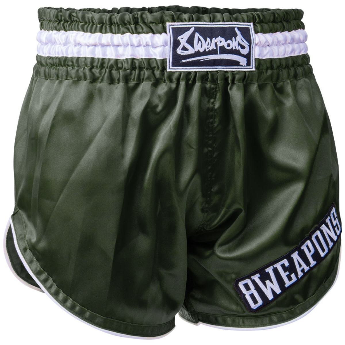 Die Hosen haben einen farbig abgesetzten Saum und sind nur mit einem kleinen Patch auf Bund und Bein veredelt. Die Hose ist eine schlichte und funktionale Muay Thai Shorts, welche durch hochwertiges Satin eine hohe Lebensdauer verspricht. Hergestellt in Thailand dem Mutterland des Muay Thai. 100% Zufriedenheit garantiert – 8 WEAPONS Qualität!