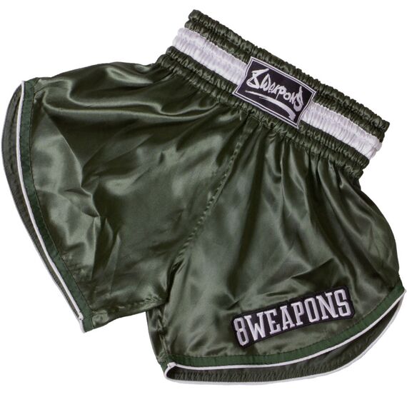 Die 8 WEAPONS Retrofight Shorts sind kurz geschnittene Muay Thai Shorts mit umfassender Beinfreiheit. Der Schnitt ist von sehr klassischen Muay Thai Shorts abgeleitet und sticht durch seine klare Form heraus. Die Seiten sind stark erhöht ausgeschnitten und schaffen damit den perfekten Bewegungsspielraum für alle Muay Thai Angriffe wie Knie und Kicks.