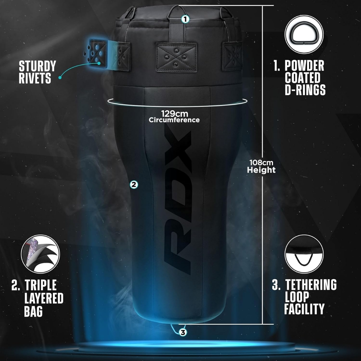 Ensemble Sac de Frappe Inclinée 3-en-1 RDX Full Black avec Gants – Sac professionnel (Ø 45,7 cm × 149,9 cm)