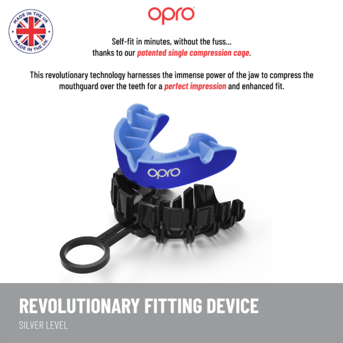 Grazie alla gabbia di compressione brevettata, si adatta in pochi minuti sfruttando la forza naturale della mascella per ottenere una vestibilità Silver stabile e confortevole.