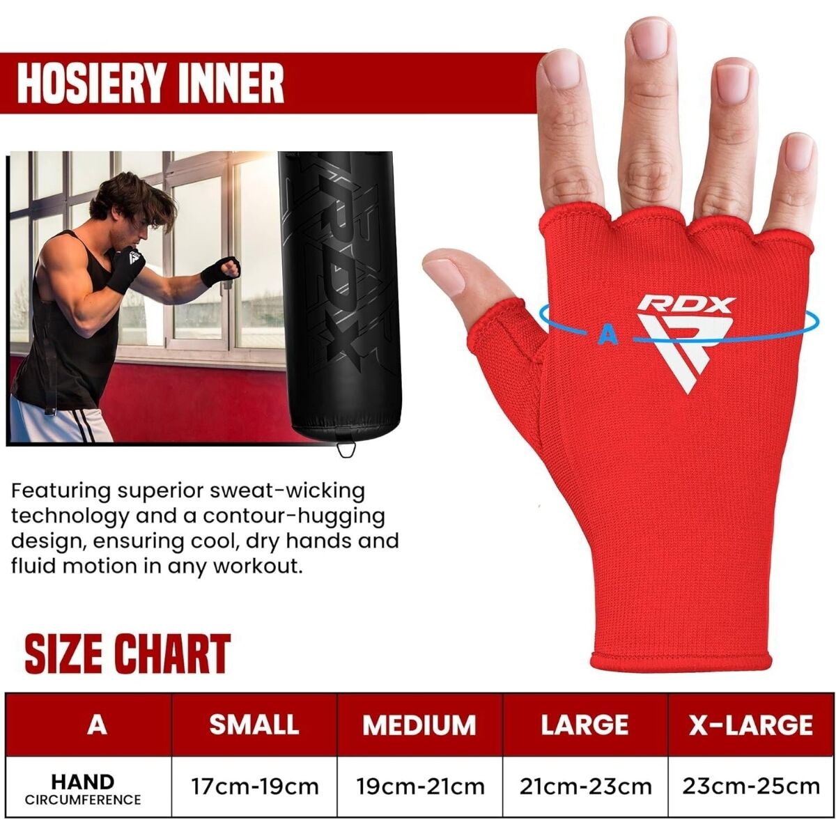 RDX Inner Gloves, Size: S, Colour: Rot