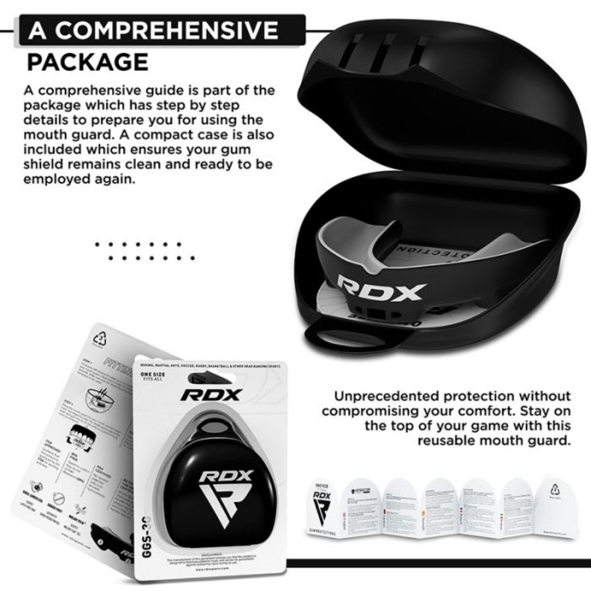 Description Mouth Guard Junior under 12 Years RDX – Black and White
