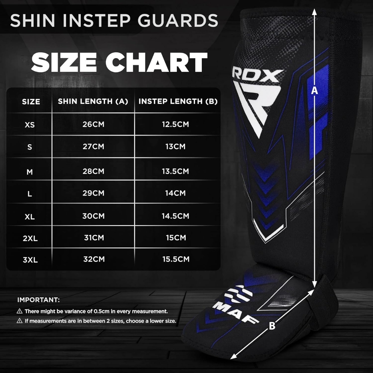Description Neoprene Shin Instep Guards RDX IMMAF – Blue/Black – 2XL