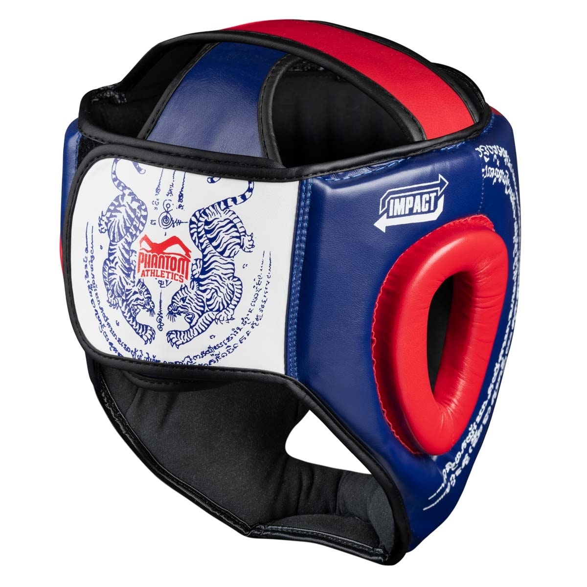 Le casque Muay Thai Phantom au design Sak Yant offre une absorption des chocs supérieure et une couverture étendue (front, pommettes, menton, oreilles) pour les séances de sparring, le kickboxing technique et l’entraînement intensif.