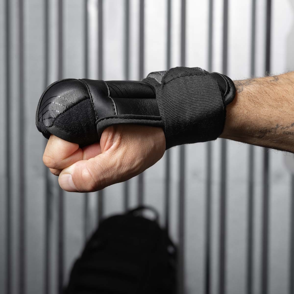 Gepolsterte Bereiche an Knoecheln und Handruecken unterstuetzen eine gleichmaessige Druckverteilung bei Sack- und Pratzenarbeit.