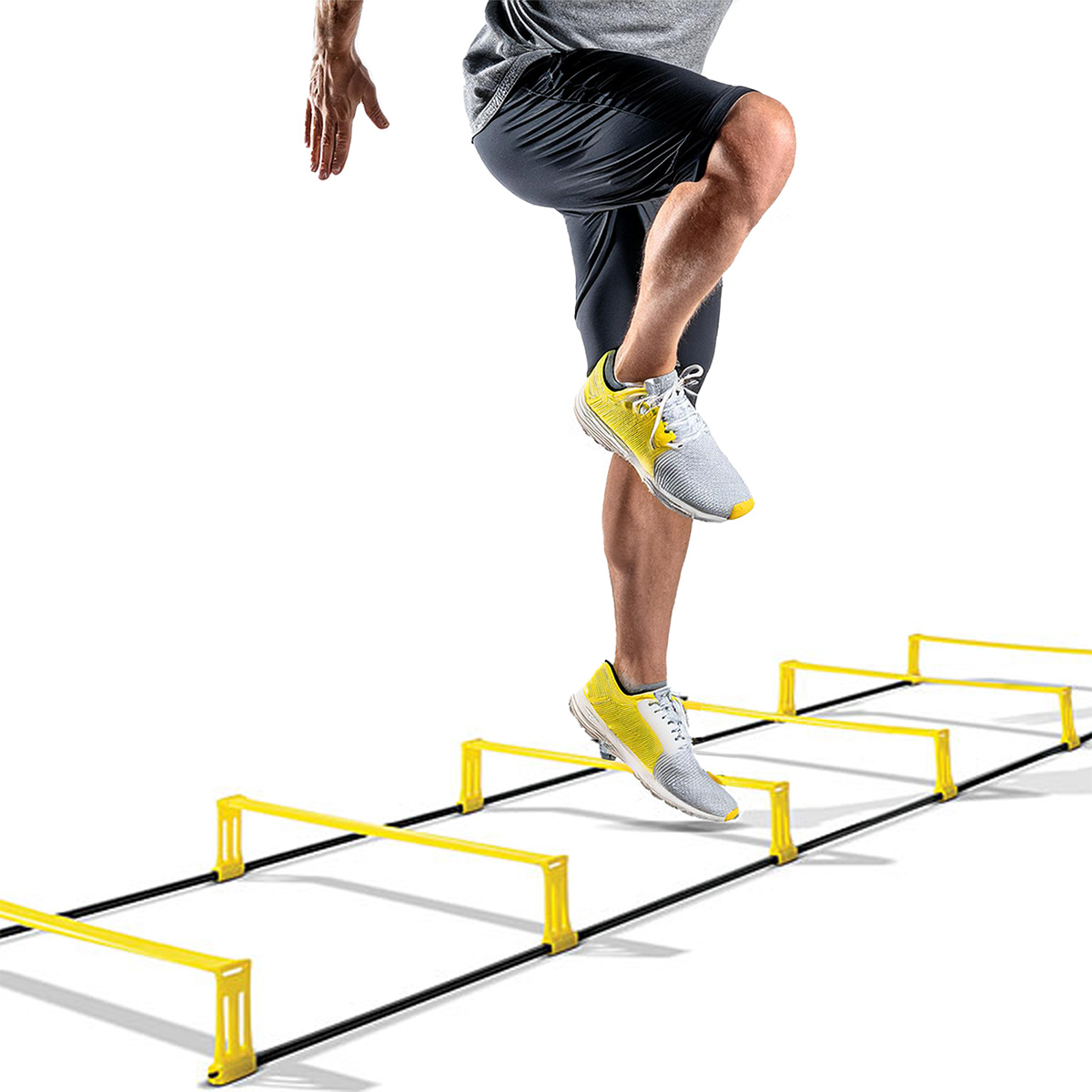 Die Omada Hürden-Skala ist ein unverzichtbares Hilfsmittel für Sportler, Trainer und Teams, die auf der Suche nach Leistung sind. Dank seines 2-in-1-Designs lässt er sich zu einer klassischen Geschwindigkeitsleiter ausziehen, um das Tempo, die Bewegungskontrolle und die Herz-Kreislauf-Ausdauer zu trainieren, und verwandelt sich dann in 10 cm hohe Mini-Hürden, um Explosivität, Koordination und Gleichgewicht zu stärken. Sie ist in Längen von 3 m oder 5 m erhältlich und passt sich jedem Raum an - ob Turnhalle, Außengelände oder Studio. Seine Struktur aus hochfestem PVC garantiert eine ausgezeichnete Haltbarkeit, während sein geringes Gewicht und das Schnellklappsystem den Transport und die Aufbewahrung erleichtern. Ideal für Fußball, Rugby, Basketball, Leichtathletik oder Crosstraining. Diese modulare Leiter bietet eine progressive und sichere Herausforderung bei jeder Trainingseinheit.