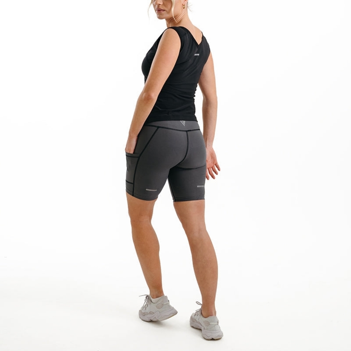 • Bandes réfléchissantes à l'arrière pour une visibilité accrue lors des courses matinales ou nocturnes.