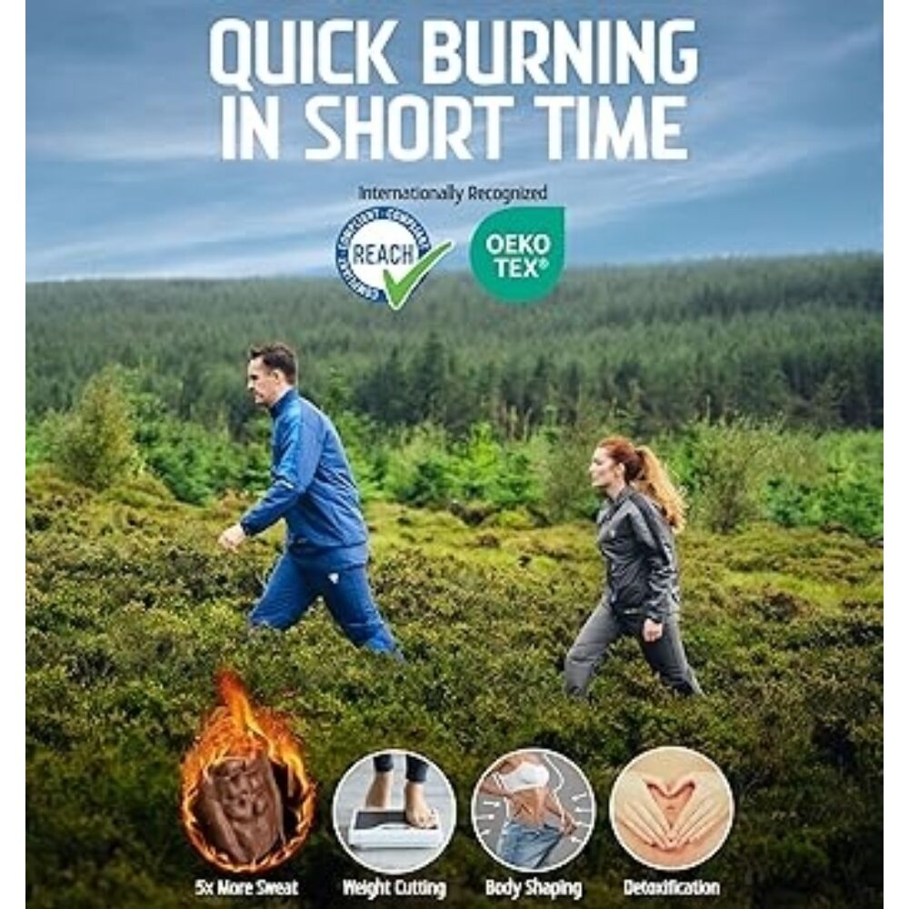 Experience unmatched comfort and unleash 5x sweat power with the RDX C1 Sweat Suit. Compliant with REACH and OEKO-TEX 100 standards, it features Heat Suit™ Tech with a distinctive silver lining in the latest Instant Sweat™ Fabric. This body-hugging design with reflective accents on the front, back, and sides lets you conquer workouts indoors and outdoors effortlessly.