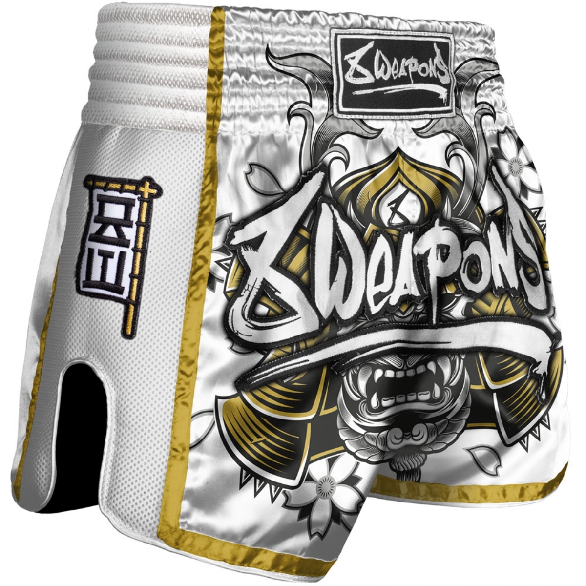 Le short Muay Thai 8 WEAPONS Super Mesh est un short moderne pour la boxe thaïlandaise. Les jambes du short sont garnies d'applications en maille et offrent un confort de très haute qualité. Le short Muay Thai est fabriqué en satin de haute qualité et a des coutures très solides, longue durée de vie garantie. Le short à coupe haute offre une liberté de mouvement ultime pour toutes les techniques de coup de pied ou de genou. Ceinture étroite pour un ajustement confortable. Un grand logo et de nombreuses autres applications de patchs améliorent encore les shorts de boxe thaïlandais. Fabriqué en Thaïlande, la mère patrie du Muay Thai chez l'un des plus anciens fabricants de shorts thaïlandais. 100% de satisfaction garantie - Qualité 8 Weapons !