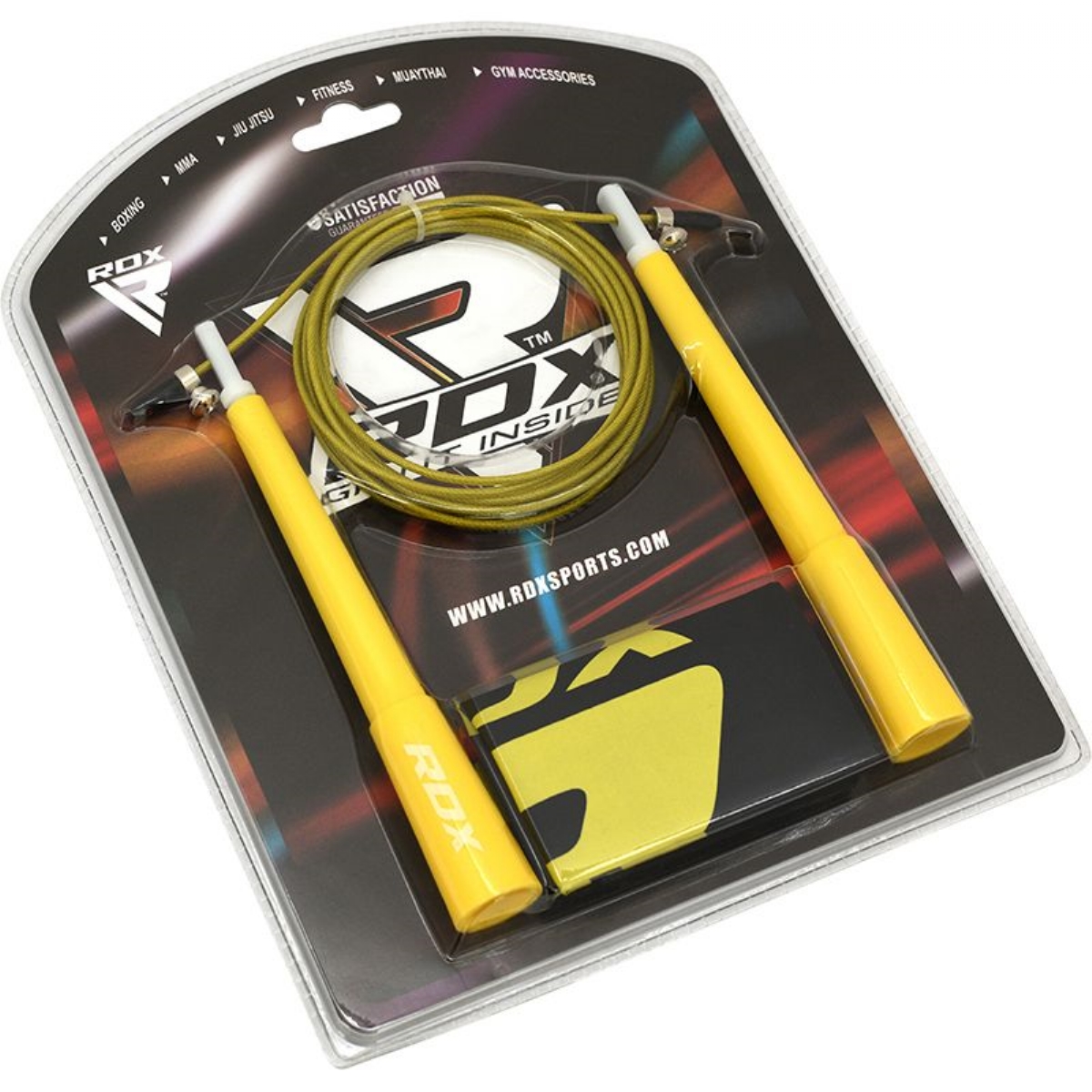 Wenn du deinem Training Abwechslung verleihen möchtest, ist das RDX C8 genau das Richtige. Das 10 ft (2,4 mm) starke Stahlseil mit robuster PVC-Ummantelung ist mit Stoppern ausgestattet, um die Länge individuell anzupassen. Die 16 cm langen Polymergriffe bieten perfekte Gewichtsverteilung und sind mit Metallkappen mit Mini-Kugellagern für 360°-Drehung ausgestattet. So erreichst du maximale Geschwindigkeit und Präzision beim Training. Abnehmbare Endkappen ermöglichen das Hinzufügen von Gewichten. Inklusive wasserdichter RDX-Nylontasche für eine einfache, knotenfreie Aufbewahrung.